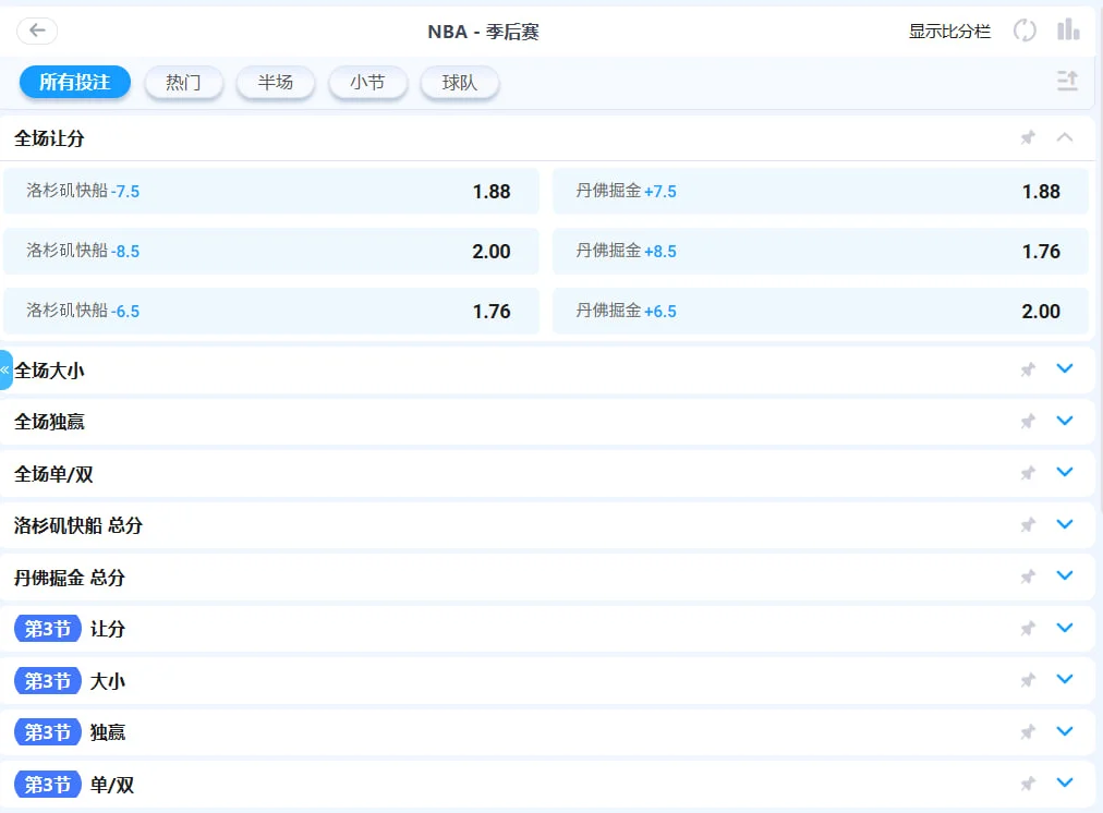 - 讓分盤:依強弱隊差距給予讓分,增加比賽平衡性。