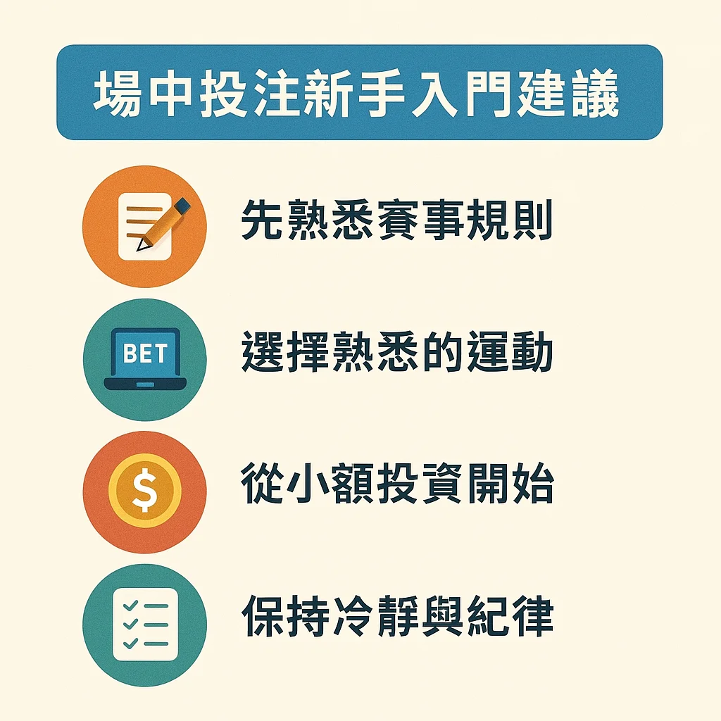 新手玩家建議從資訊充足、規則明確的賽事開始,例如 NBA、MLB 或世界盃等熱門比賽,有助建立基本判斷力。
